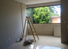 Colocação de roda pé de madeira, revisão elétrica, limpeza e rejuntamento do porcelanato, revitalização da lavanderia, pintura interna e limpeza