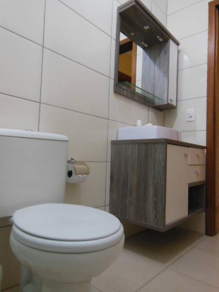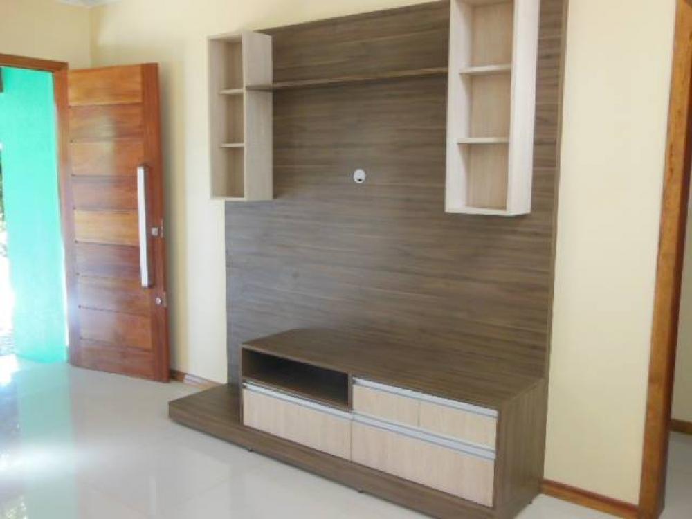 Casa em alvenaria com 81,78 m², telha de barro esmaltada com manta térmica, madeiramento a vista, forro de PVC, aberturas em angelim, piso porcelanato, roda pé de madeira. Elétrica, hidráulica e rede de esgoto com fossa e filtro. Pintura geral e vidro. Com sala e cozinha, três quartos, banheiro, lavanderia interna e compartimento para gás externo. Casa pronta e entregue.