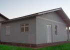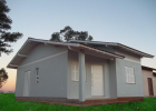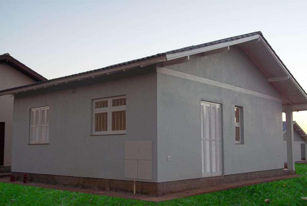 Casa de alvenaria com 59,82 m², telha cerâmica e manta térmica, madeiramento a vista, forro de PVC, aberturas em eucalipto, piso porcelanato, com roda pé de madeira. Elétrica, hidráulica e rede de esgoto com fossa, filtro. Pintura geral e vidro. Com sala e cozinha, dois quartos, banheiro e lavanderia externa. Casa pronta e entregue.