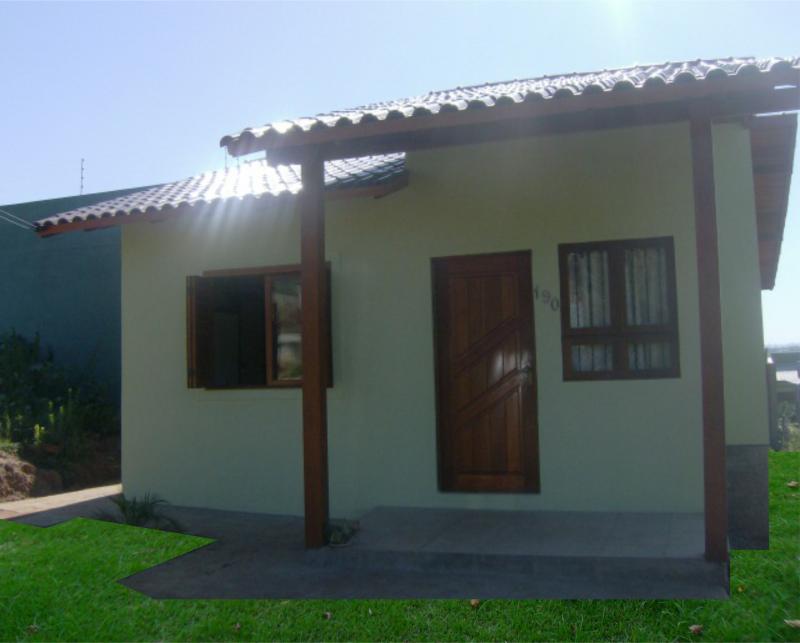 Casa de alvenaria com 57,64 m², telha de barro esmaltada, com manta térmica, madeiramento a vista, aberturas em eucalipto, piso cerâmico Classe A, com roda pé madeira. Elétrica, hidráulica e rede de esgoto com fossa, filtro. Pintura geral e vidro. Com sala, cozinha, 2 quartos, banheiro, lavanderia externa. Casa pronta e entregue.