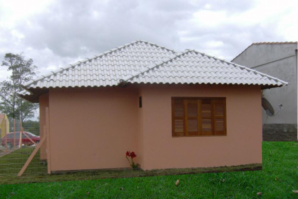 Casa de alvenaria com 69,95 m², telha de barro esmaltada, telhado estilo 4 águas, com manta térmica, madeiramento a vista, forro de cedrinho, aberturas em angelim, piso cerâmico classe A, com roda pé de madeira. Elétrica, hidráulica e rede de esgoto com fossa, filtro. Pintura geral e vidro. Com sala e cozinha, três quartos, banheiro e lavanderia externa com bay-window. Casa pronta e entregue.