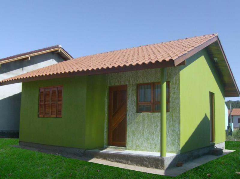 Casa de alvenaria com 40 m², telha de barro natural sem manta térmica, caixa de venta em madeira, forro de PVC, aberturas de madeira eucalipto, piso classe A, com roda pé de madeira. Elétrica, hidráulica e rede de esgoto com fossa, filtro. Pintura geral e vidro. Com sala e cozinha, dois quartos, banheiro e lavanderia externa. Casa pronta e entregue.