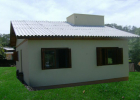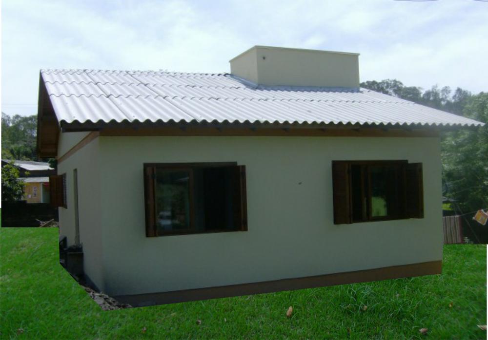 Casa de alvenaria construida pela Objetiva Casas, com quarto casal, 2 quarto solteiro, banheiro, sala, copa e cozinha integralizados. Telha de fibra cimento 6 mm.