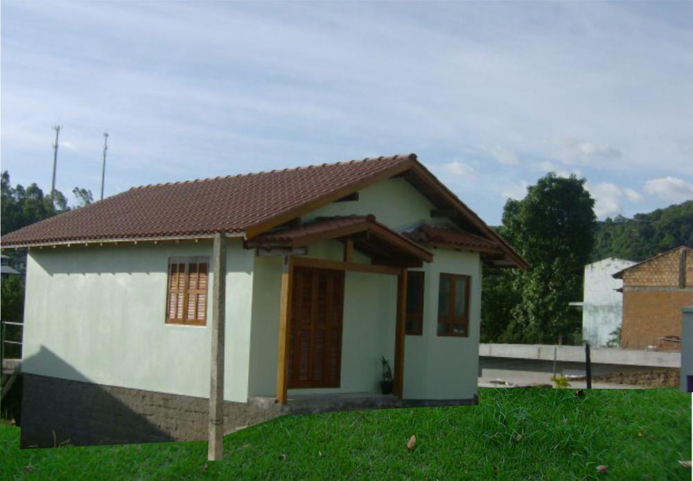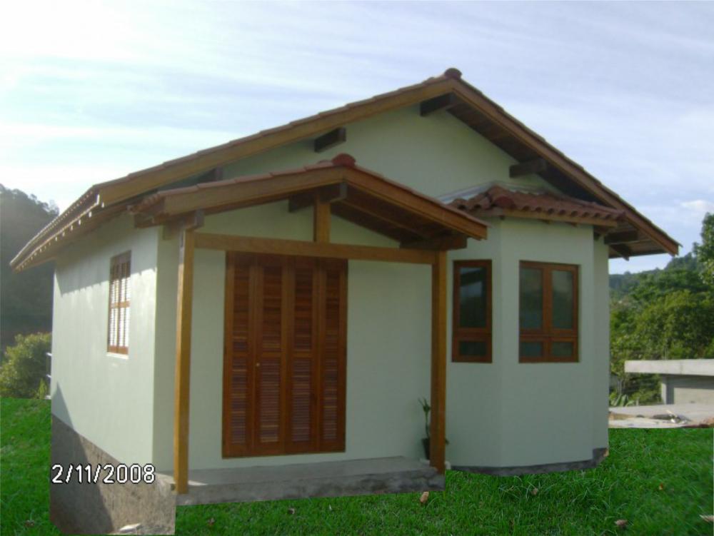 Casa de alvenaria contruída pela Objetiva Casas, com quarto casal, quarto solteiro, banheiro, sala, copa e cozinha integralizados. Sacada fundos. Terreno em declive foi executado terraplanagem e feito porão.