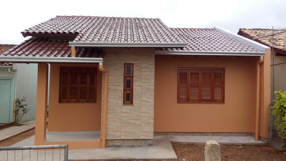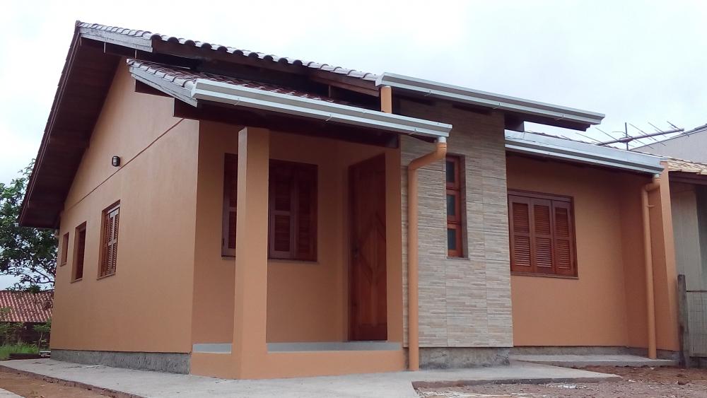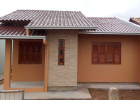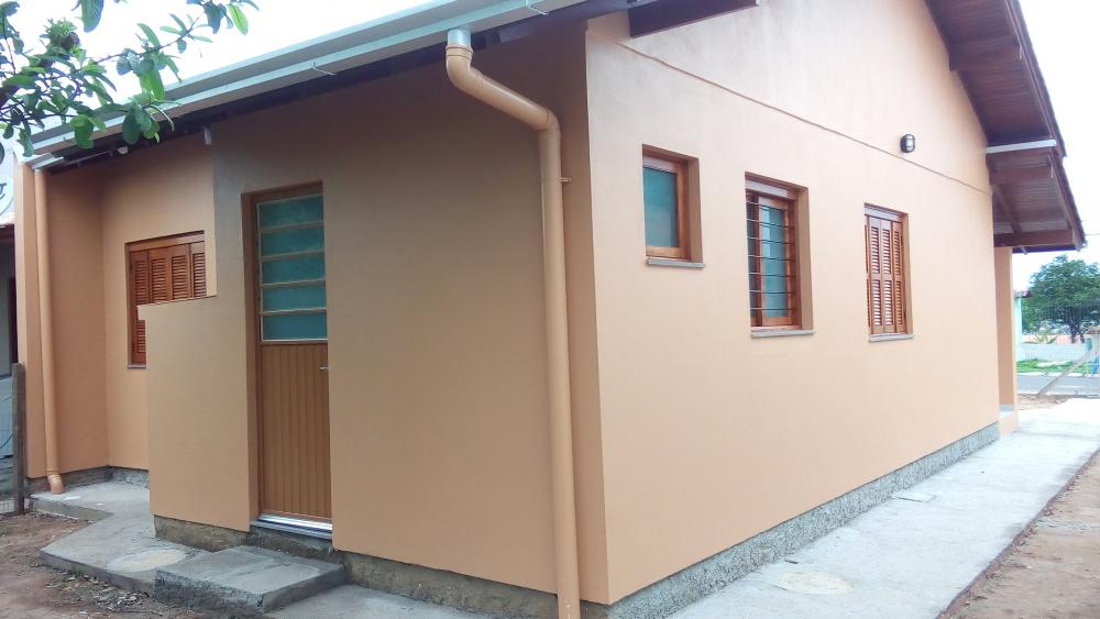 Casa em alvenaria com 60,52 m², telha de barro com manta térmica, madeiramento a vista, forro de PVC, aberturas em eucalipto, piso retificado e porcelanato, roda pé de piso. Elétrica, hidráulica e rede de esgoto com fossa e filtro. Pintura geral e vidro. Com sala e cozinha, dois quartos, banheiro, lavanderia interna, lavabo e compartimento para gás externo. Casa pronta e entregue.