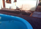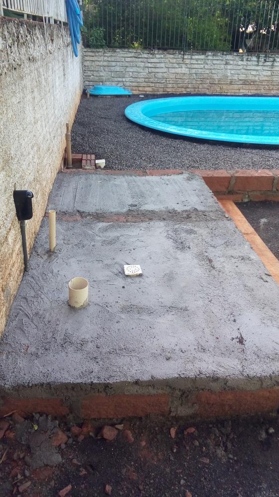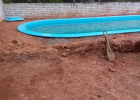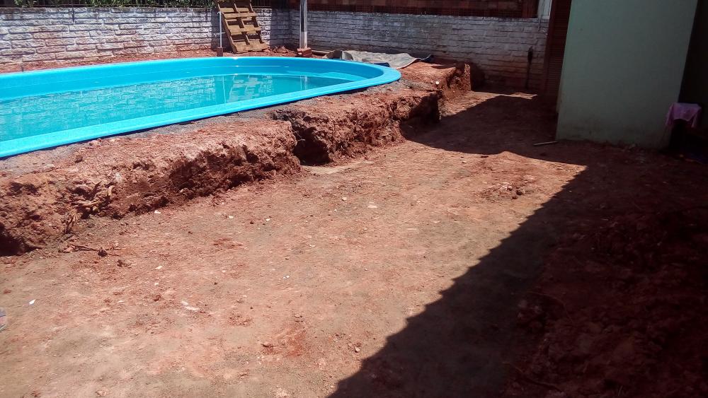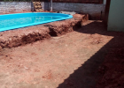 implementação, ajustes e organização da area de piscina, escavação, rede pluvial, contenção, brita e pó de brita.