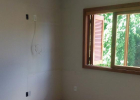 Colocação de roda pé de madeira, revisão elétrica, limpeza e rejuntamento do porcelanato, revitalização da lavanderia, pintura interna e limpeza